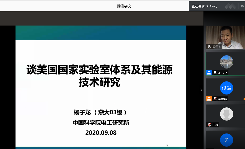 03级校友中国科学院电工研究所杨子龙研究员在报告中介绍了美国国家实验室建设、运作和管理等方面的情况,然后以劳伦斯伯克利实验室为例,介绍美国国家实验室大科学装置、科研项目、经费和人员管理的情况,并展示了美国国家能源技术领域的研究动态和项目案例。杨子龙研究员的报告内容丰富,视角独特,对我院未来实验室建设、学科发展方向和管理模式与国际接轨、促进“双一流”建设具有重要借鉴意义。