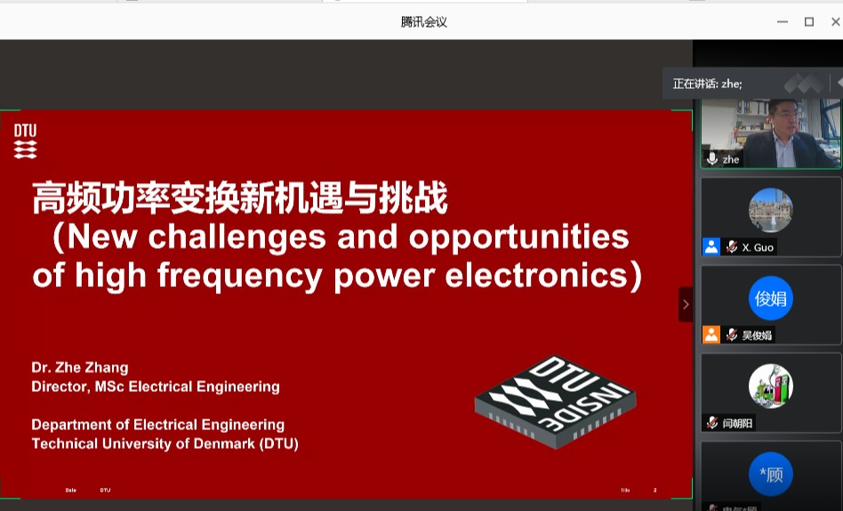 98级校友丹麦科技大学张哲教授在报告中介绍了基于第三代半导体器件的电力电子功率变换技术的最新研究进展,重点针对高频功率变换技术领域的关键问题,如最小化环路阻抗设计、开关噪声抑制、减少磁性元件应力和优化热设计方法等方面进行了深入浅出的介绍,最后对电力电子高频功率技术发展趋势进行展望。张哲教授的报告内容丰富,聚焦科技前沿,与会师生表示深受启发并对未来电力电子装备高频化研究方向充满信心。