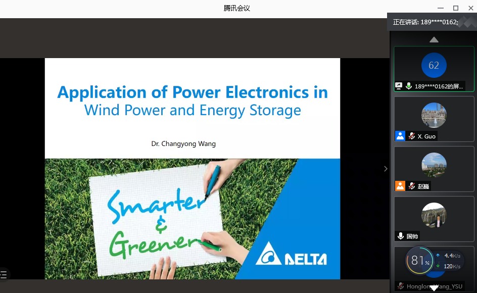95级校友台达电子集团王长永处长在报告中介绍了全球工业界风力发电和储能系统研究进展和最新研究成果,提出了系统中电力电子装备研究所面临的技术挑战和工业设计生产中需要关注的技术问题,以及对电力电子化能源系统未来发展的思考。王长永处长的报告高屋建瓴、内容丰富、立意深远,让广大师生对电力电子装备工业化设计有了深刻的认识,对未来理论研究结合工业实践提供了新思路和新方向。