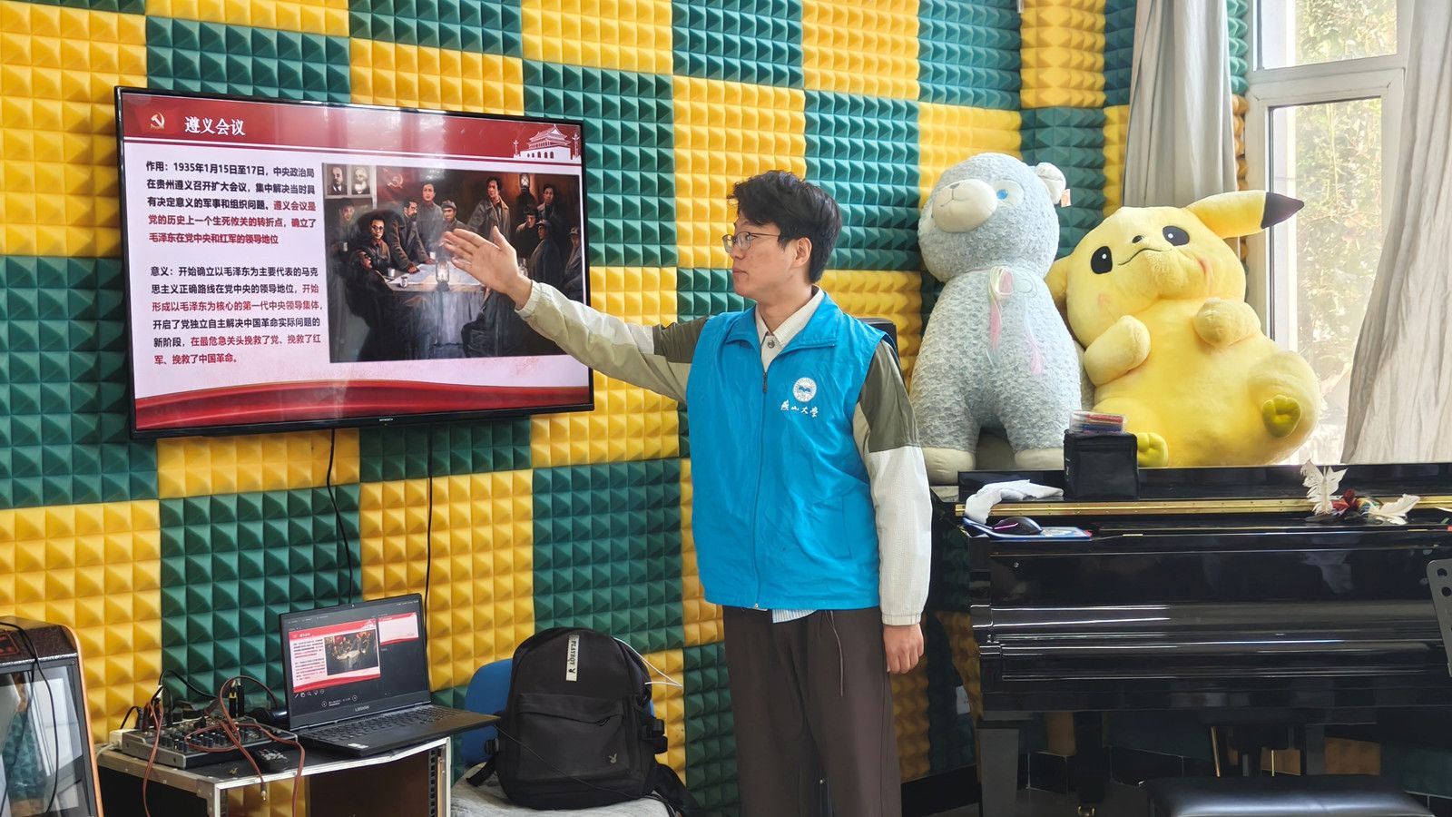 志愿者带领大家学习“飞夺泸定桥、爬雪山、过草地、遵义会议”等经典片段,并诵读《七律·长征》。